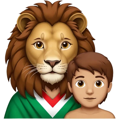 A lion eating a fish, feeling sad, cry, portrait, bust up emoji