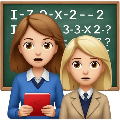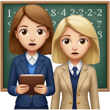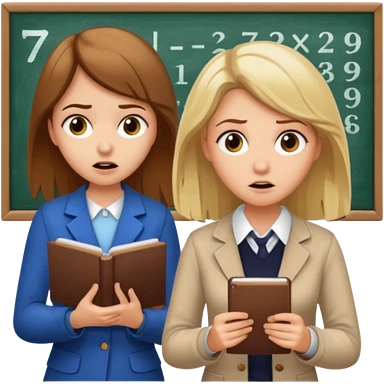 super scared white girl with brown hair doing math while a scary old blond teacher stands over her emoji