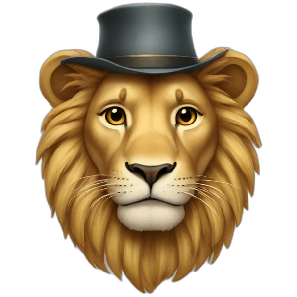 cute lion with a chestnut hat, emoji-inspired, big sparkling eyes, warm friendly face, autumn color palette, simple cartoon look emoji