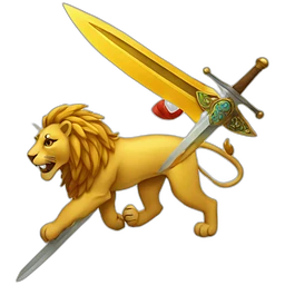 rhindon gold sword with red handle and gold lion on the end of the handle emoji