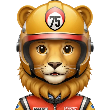 Lion with racing helmet potrait emoji | AI Emoji Generator