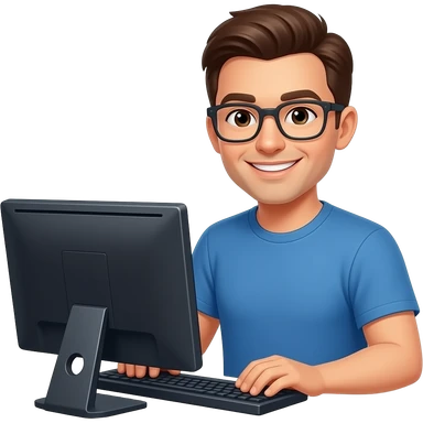 ingeniero informático sonriente con un ordenador y camiseta emoji