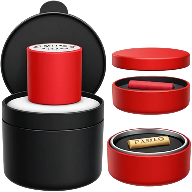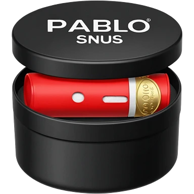 A swedish snus/lip pillow in the box black little box and write on them mini pablo (red) emoji