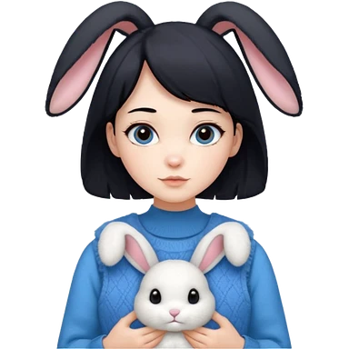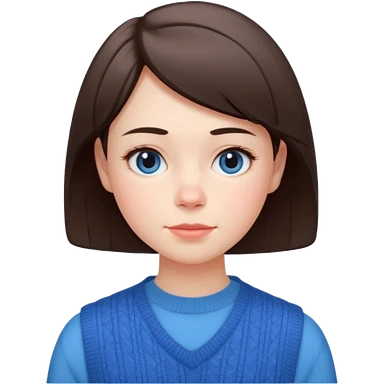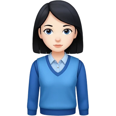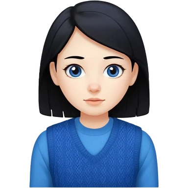 make a girl hair short black and wear bunny skin pale ok and wear Sweater vests blue and make little bit a younger emoji