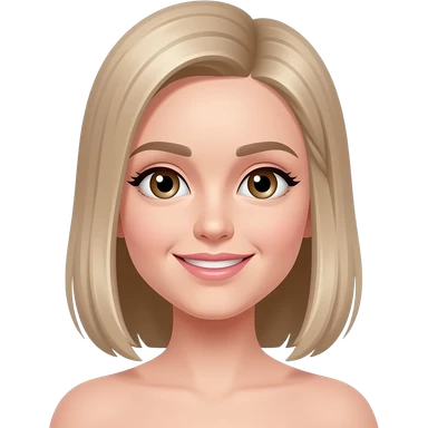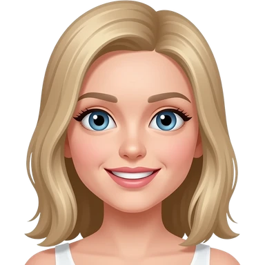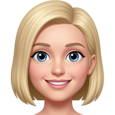 Just like this but hair Part is on right side. Hair straighter and lighter in color. Skin is also more pale/pinkish. bigger eyes, thin lips, toothy smile. No lips. Hair is a little longer. lighter hair. blue eyes and longer hair. emoji