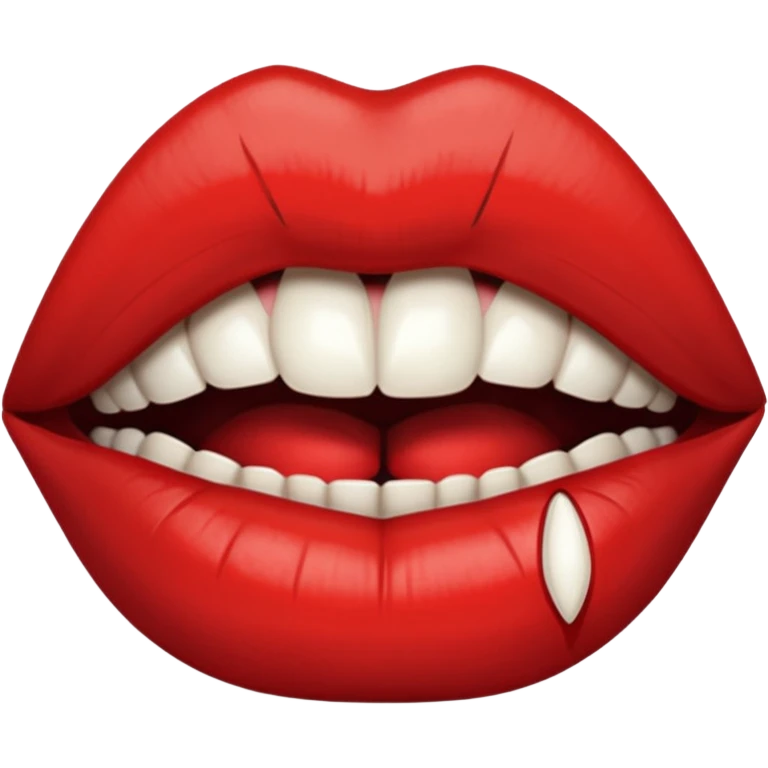 a vampire teen girl, black hair, red eyes, red lips and fangs, biting emoji
