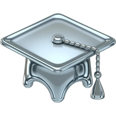 Créez une icône en forme de graduate cap. Elle doit être faite de chrome liquide brillant et avoir un aspect 3D fluide et des reflets métalliques fondues emoji
