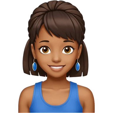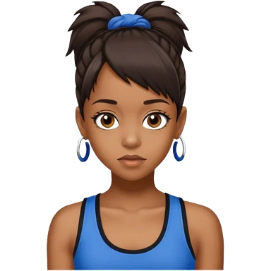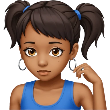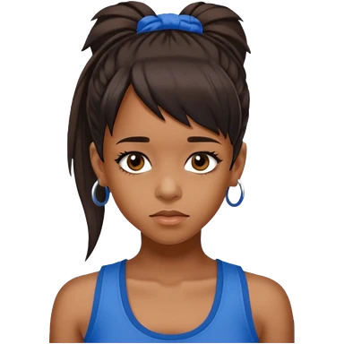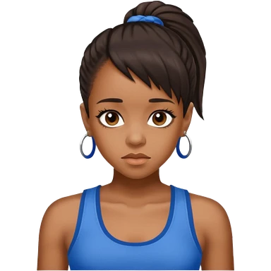 Lisa Left Eye Lopes brown eyes dark brown Ponytail hair, blue tank top emoji