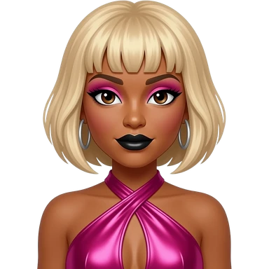 T-Boz from TLC with brown eyes, short blonde hair, fuchsia metallic crop top, silver necklace emoji