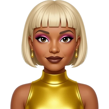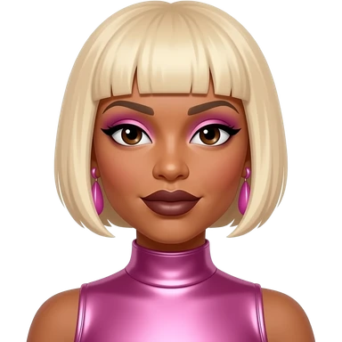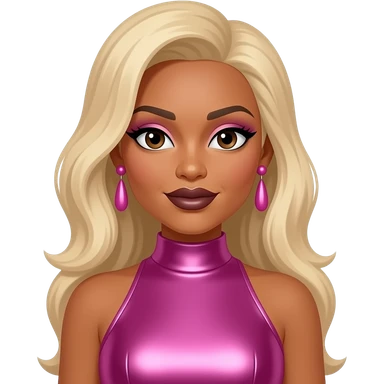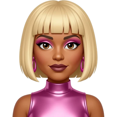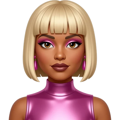 T-Boz from TLC with brown eyes, short blonde hair, fuchsia metallic crop top, silver necklace emoji