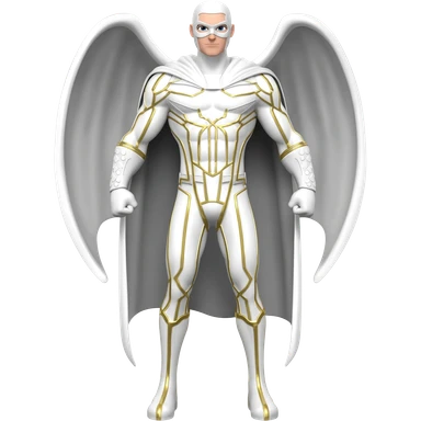 Superhero suite male all white and gold lines very tall long white cost and wing full white masks full body emoji