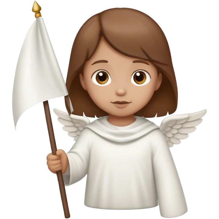 Little angel with brown hair and a white flag emoji | AI Emoji Generator