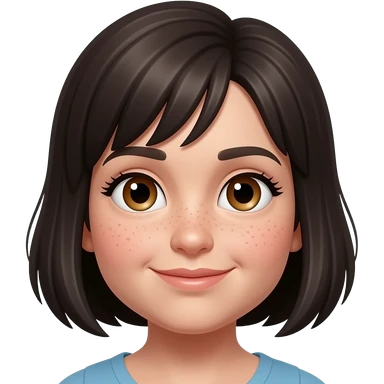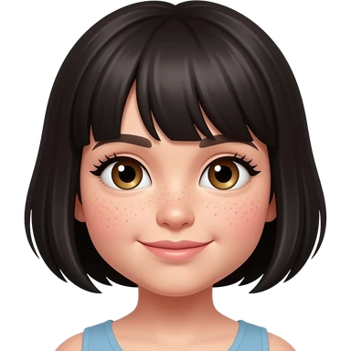 short dark hair little bit chubby hazel eyes long lashes some freckles emoji