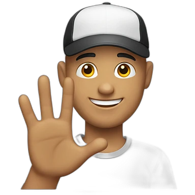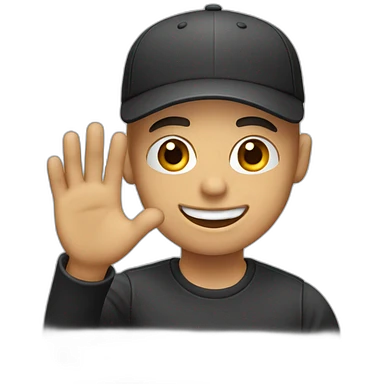 A bald gut with black cap waving and smiling emoji