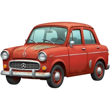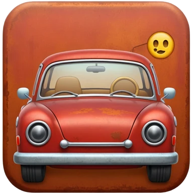 Red rusty car driving towards screen emoji