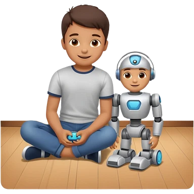 Little boy playing with toy robot on the floor emoji | AI Emoji Generator