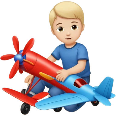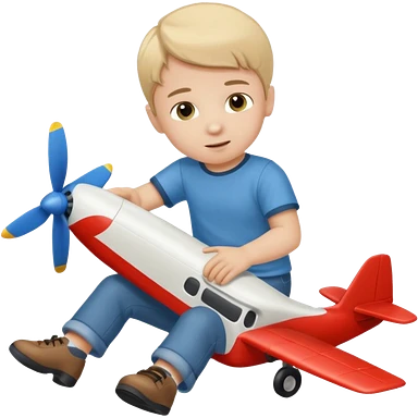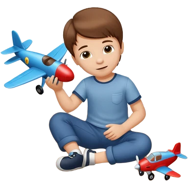 Little boy playing with toy airplane on the floor emoji