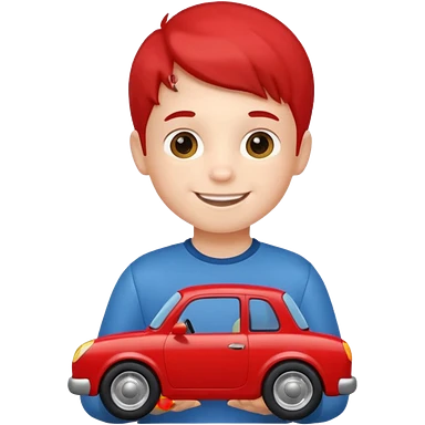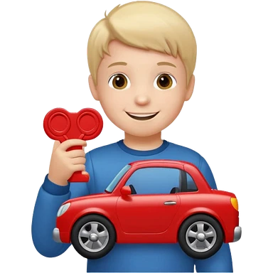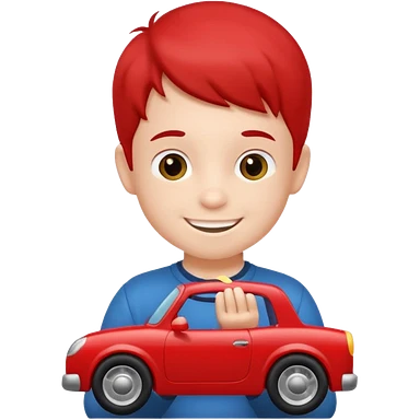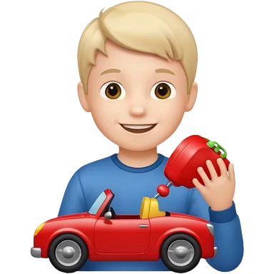little boy with car toy on his hand emoji