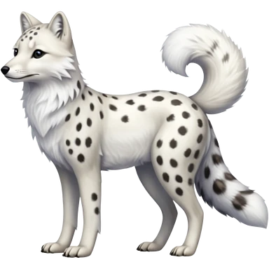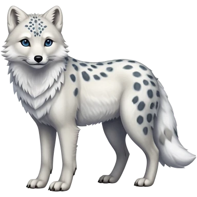 Hyper-realistic furry soft smooth elegant Arctic-wolf-arctic-fox-Snow-leopard-fusion-hybrid-animal-creature, full body emoji