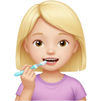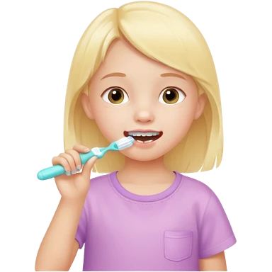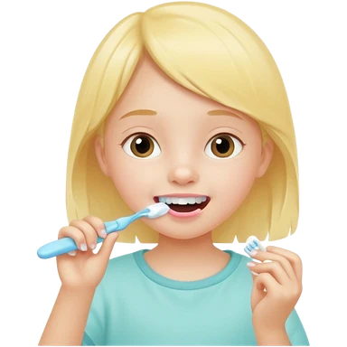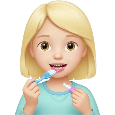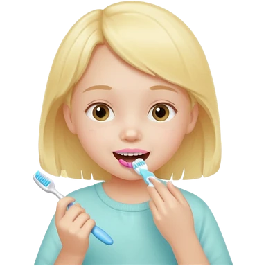 little girl brushing her teeth, pastel portrait, bright nourishing morning atmosphere, soft focus emoji