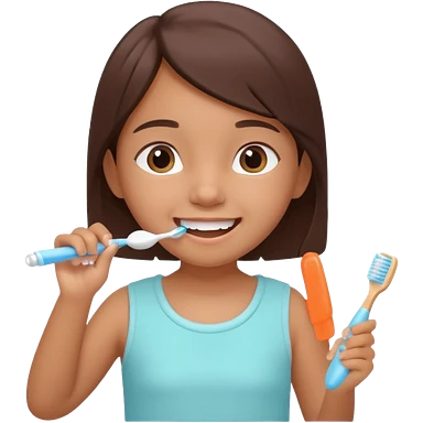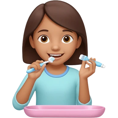 little brown girl brushing her teeth, pastel portrait, bright nourishing morning atmosphere, soft focus, isometric 3d plush emoji | AI Emoji Generator