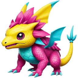 Yellow and cyan and magenta Pokémon-Fakémon-creature emoji