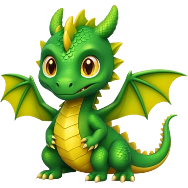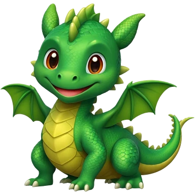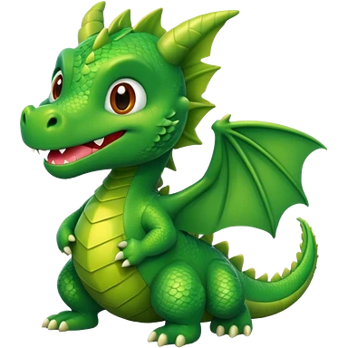 A green little dragon looks at me and holds a crystal shak in his hands emoji