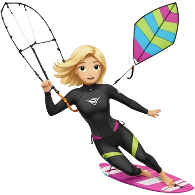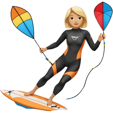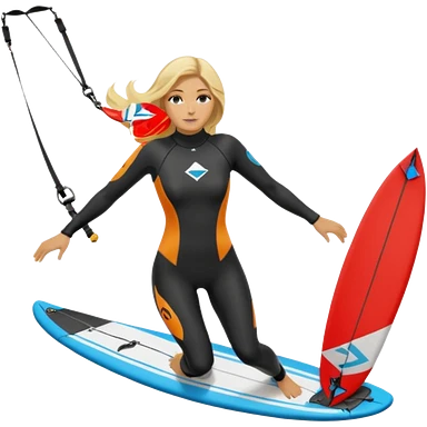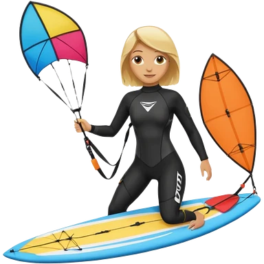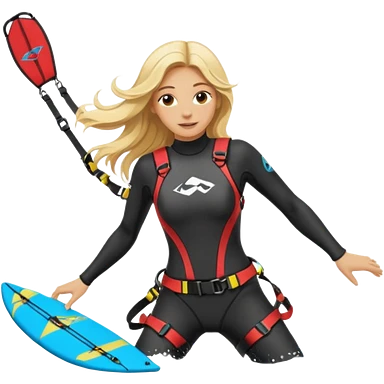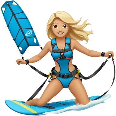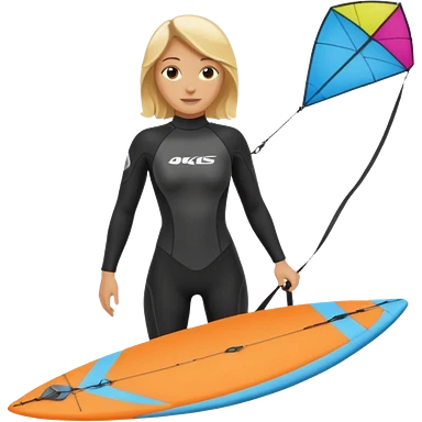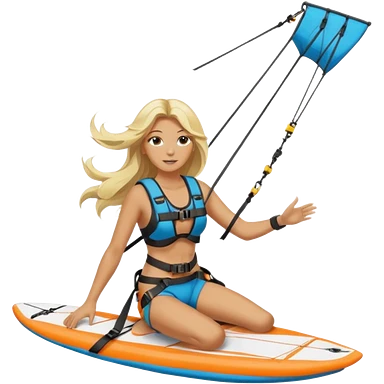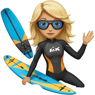 Kitesurfing blond ladie showing kite and board emoji