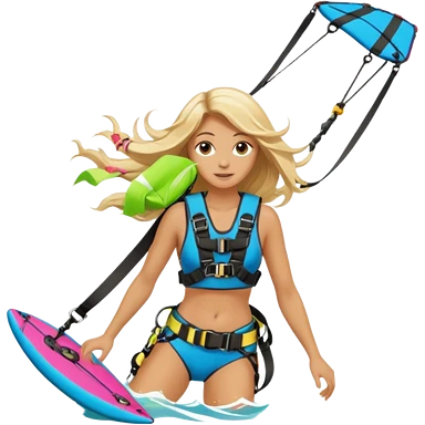 Blonde long haired ladie Kitesurfing with harness emoji