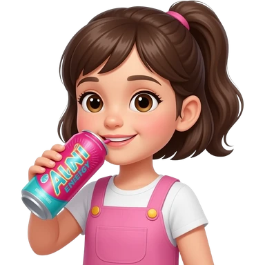 little girl drinking canned energy drink emoji
