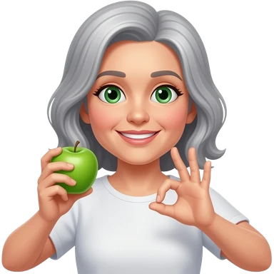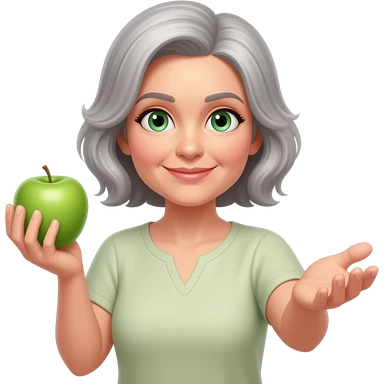 Lady around 45 with Green eyes beautiful grey hair and with Green apple and sending heart emoji