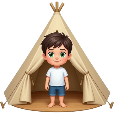 Little slim dark haïr boy with green eyes in tentrum on the floor emoji