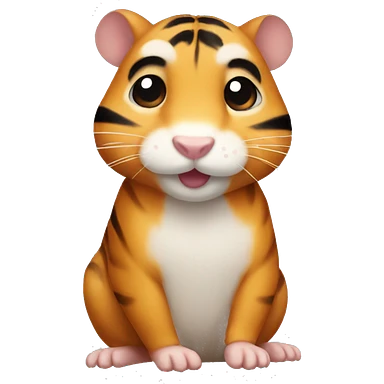 Cute tiger emoji, full body, standing pose, smiling face, big round eyes, orange fur with black stripes, chubby and adorable, short legs, small ears, 3D emoji style, smooth shading, bright colors, simple clean design, transparent background emoji