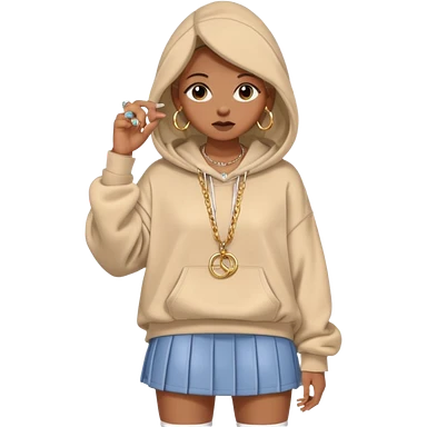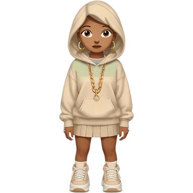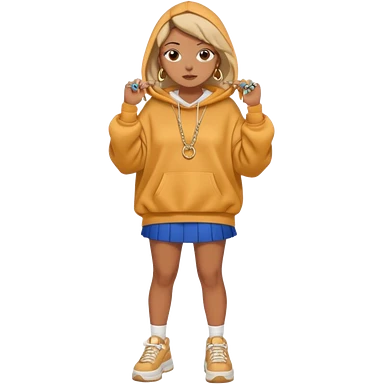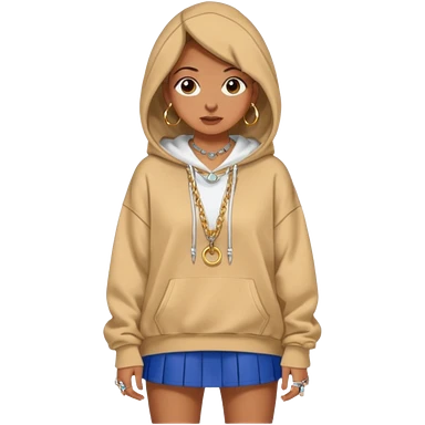 think oversized hoodie over a mini skirt, chunky sneakers grounding the look, and maybe a few layered necklaces or rings to flex a little personality. Sometimes she goes edgy with a leather jacket and ripped jeans, other times soft with flowy dresses or pastel cardigans. emoji