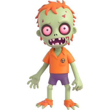 a little chubby teenage boy with brown emo hair, gray-green eyes, zombie emoji