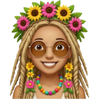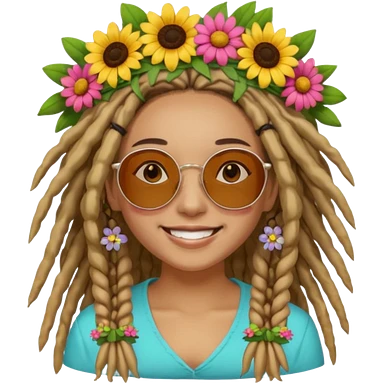 Woman with dreadlocks, round sunglasses, and flower crown. emoji