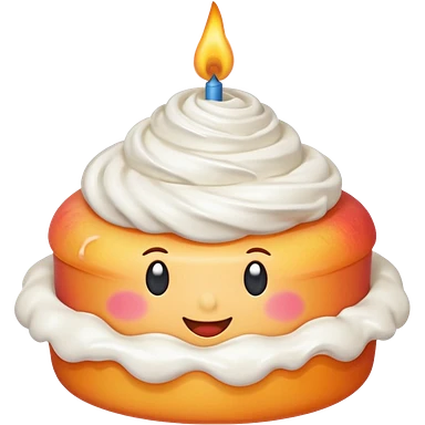 Peach emoji covered with whipped cream and a birthday candle on it emoji