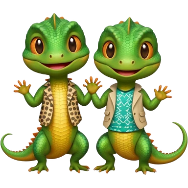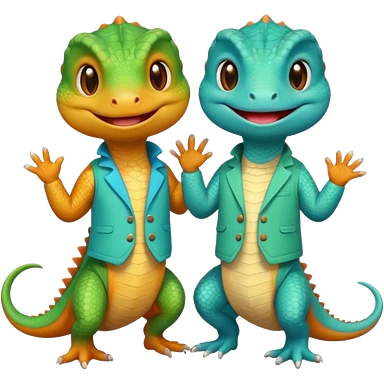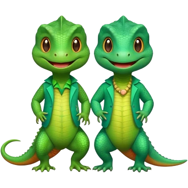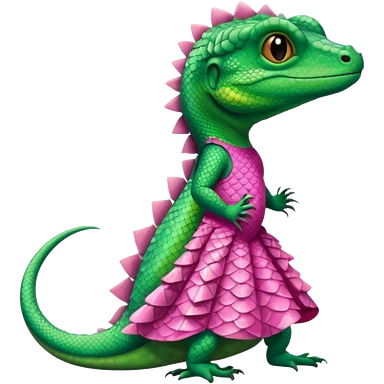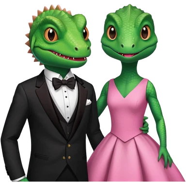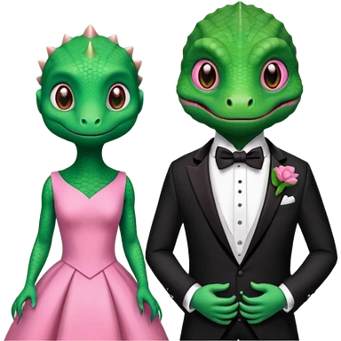 Lizard wears a cute pink dress with her lizard man wears tux emoji