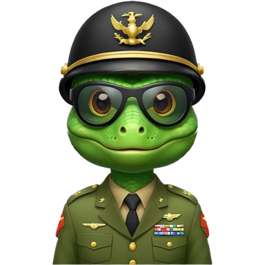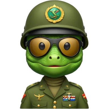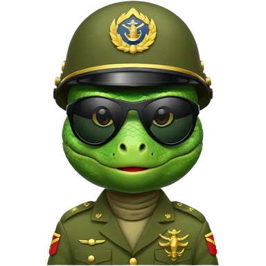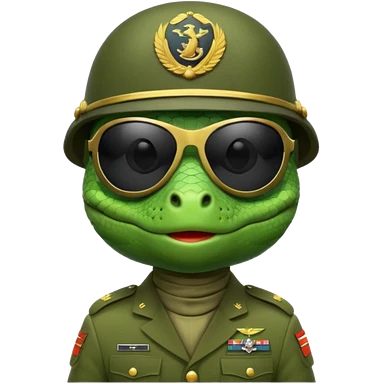 Lizard in military uniform with black sunglasses and military helmet emoji