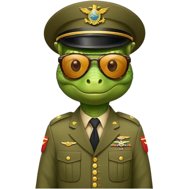 Lizard in militaryuniform with purple sunglasses. emoji | AI Emoji Generator