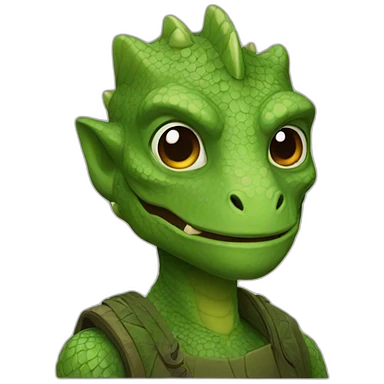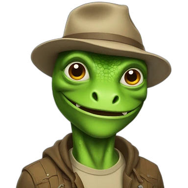 The lizard is wearing a suit and its eyes are shining with excitement. emoji