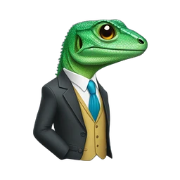 The lizard is wearing a suit and its eyes are shining with excitement. emoji