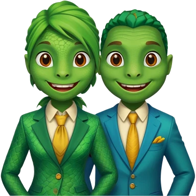 Female lizard and male lizard wearing human clothes emoji
