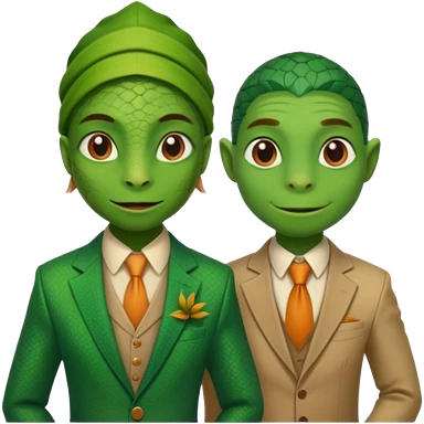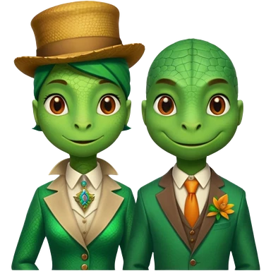 Lizard wears a cute pink dress with her lizard man wears tux emoji | AI Emoji Generator