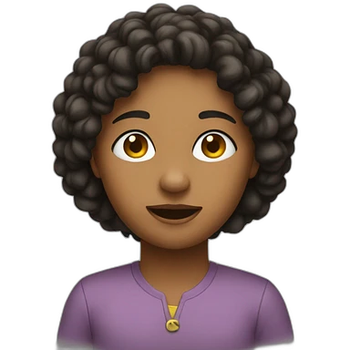 brown girl with curly hair, brown eyes and brown lip linee emoji