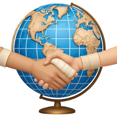 instead of two hands holding a globe, we have two hands handshaking in front of a globe. And in the background, we can see that the globe has a bandage or something. emoji