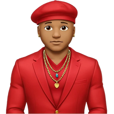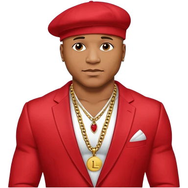 LL Cool J shirtless with necklace, red suit jacket emoji