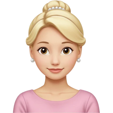 Blonde Women with Bun, Elegant Lady – blonde hair in neat low bun, pearl earrings, gentle smile. emoji