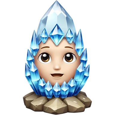 A single cute crystal rock character inspired by a clear quartz cluster, chunky round base with many tall transparent crystal spikes growing upward all around it with a face emoji