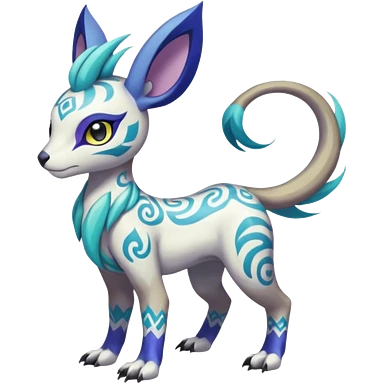 Tropical Tiny Marked Patterned Tribal Colorful Skilled Adept Graceful Asian Painted Garurumon-Meloetta-Absol-Suicune-Cobalion-fusion-hybrid-creature (full body) emoji